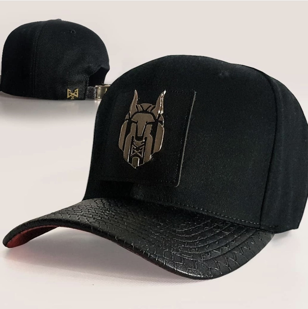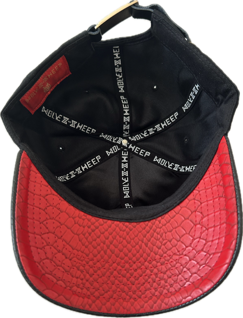 Named after the ancient stone this smooth design is both elegant and stylish. Black cotton crown with a black and red leather beak. Black leather square patch on the front with our signature Wolvez Not Sheep emblem in gold coloured metal. Adjustable fitting at the back.